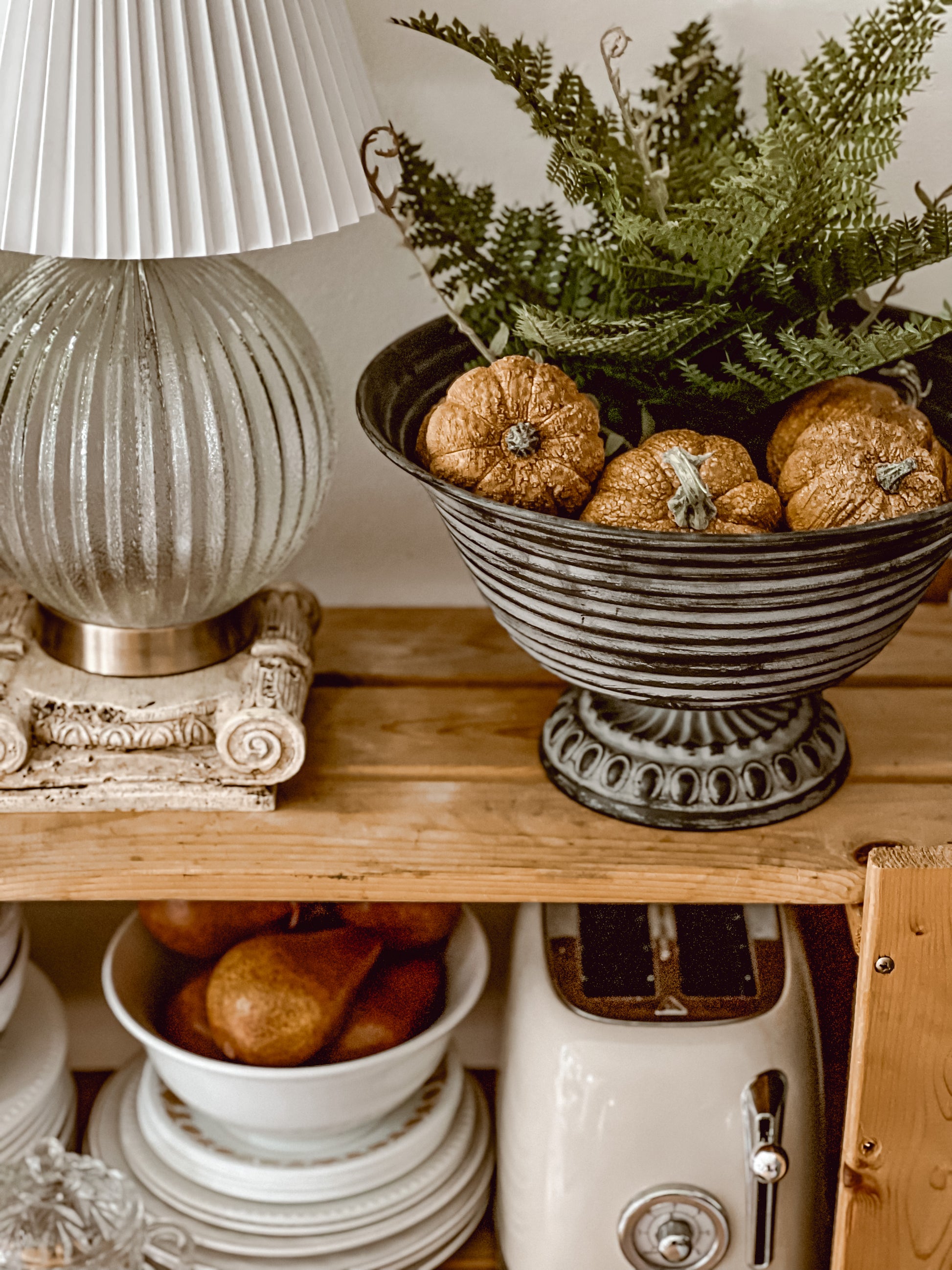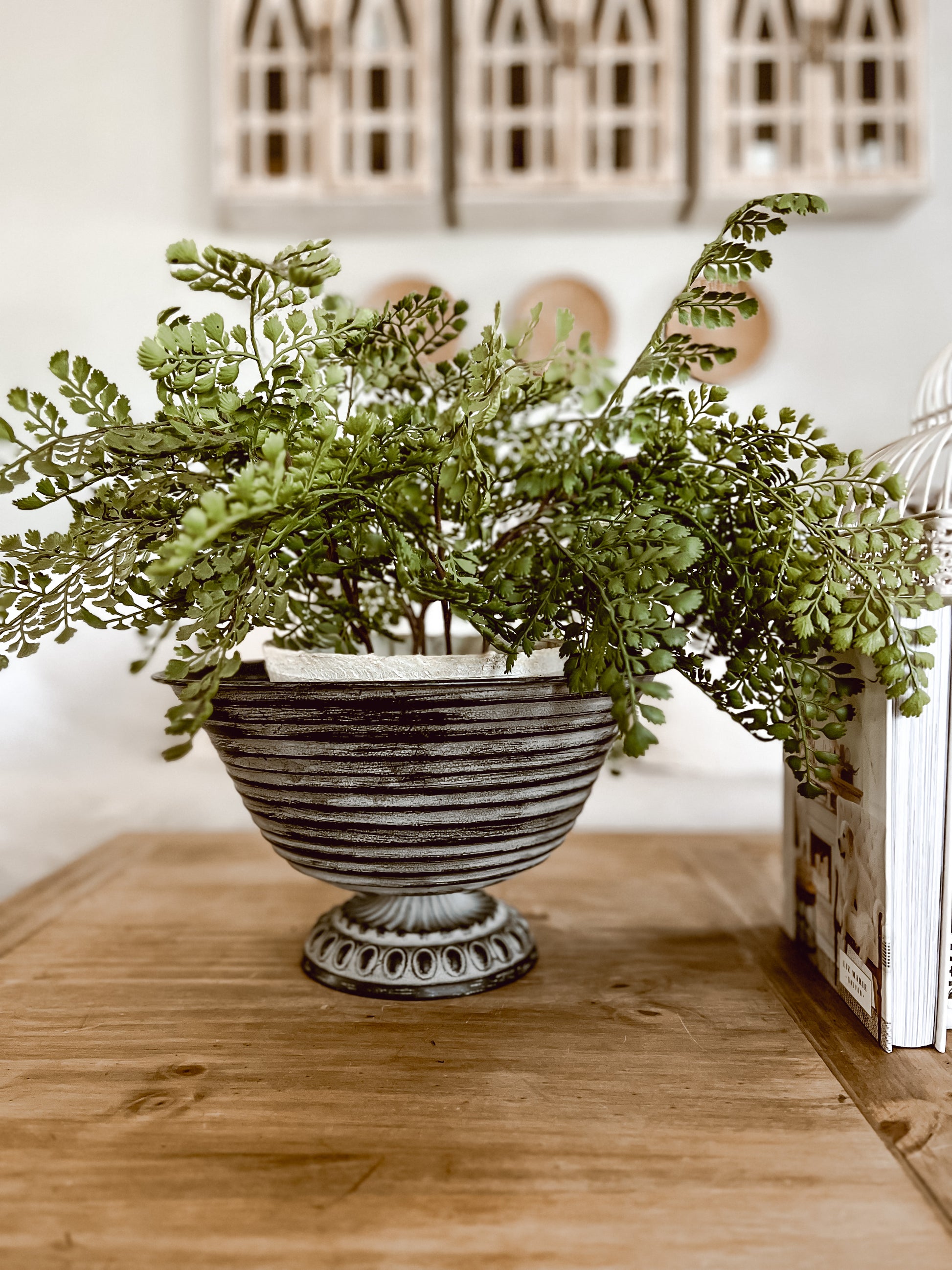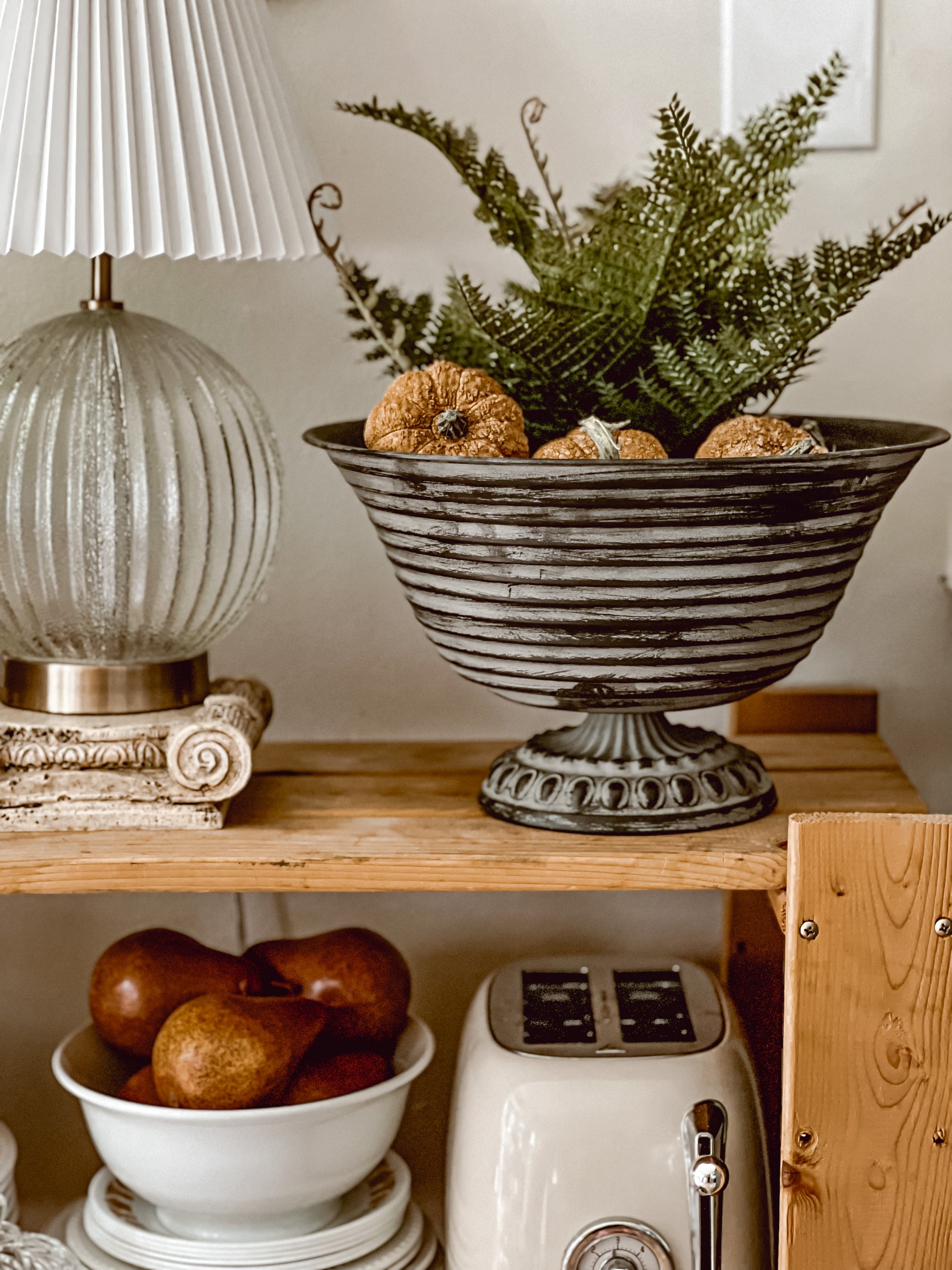 13” Black Fluted Pedestal Bowl